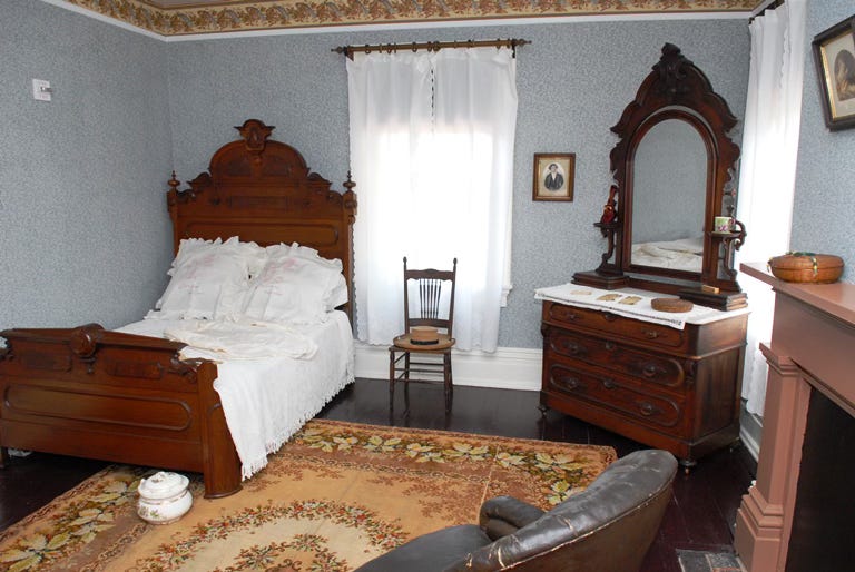 A bed pillow, embroidered by Helen, reads, “Two is Company, Three’s a Crowd.” The tour guide claimed its meaning remains a mystery. Still, I entertained some fun fantasies. Subtle reference to a mistress, perhaps? Or to memories of her husband’s first wife, Anna, whom Helen may have felt still shared their bed? Or just commentary on dinner party preferences?