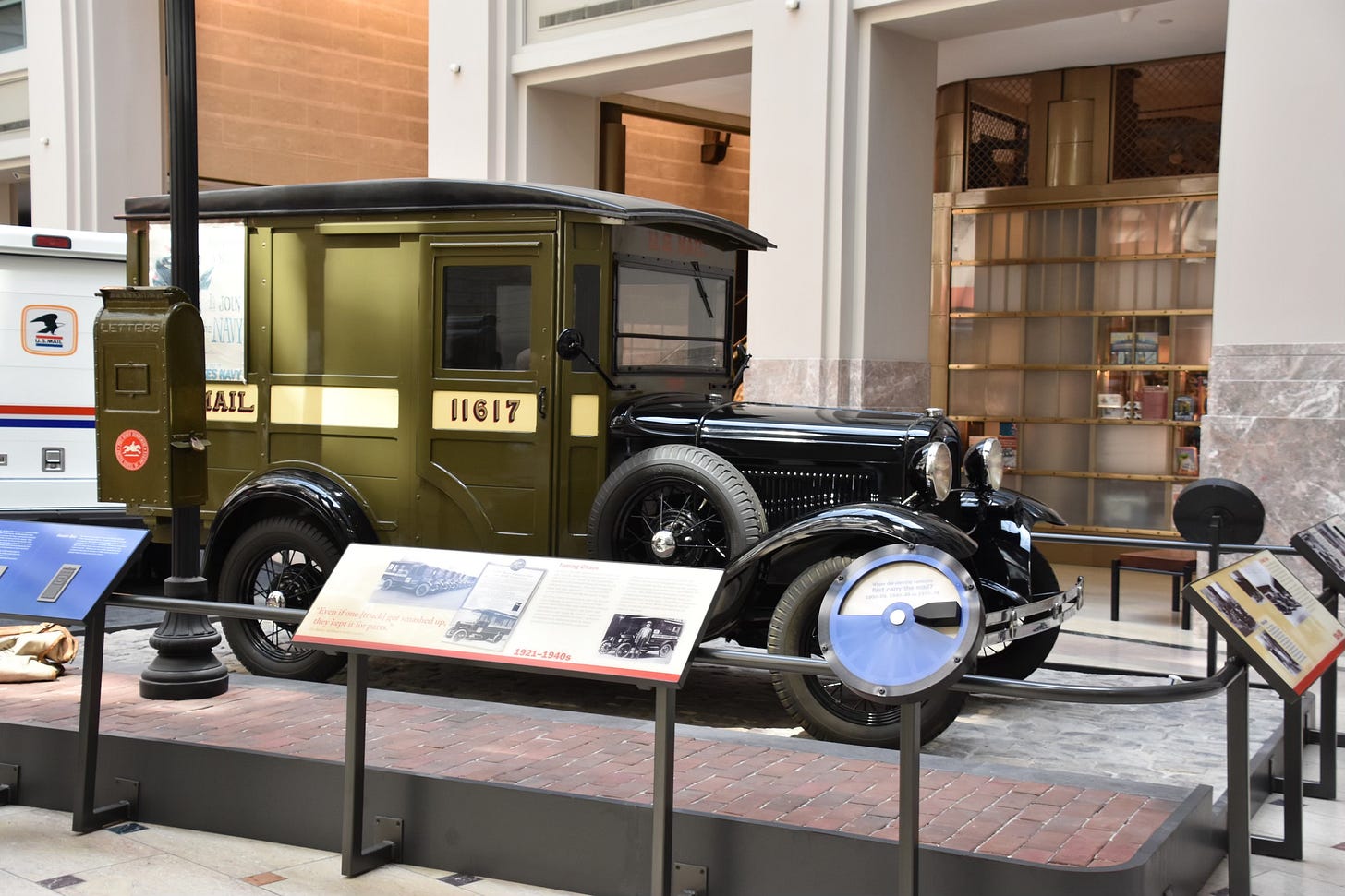 Exhibits at the Post Office Museum feature an early mail delivery truck, a replica of an 1851 stagecoach, and more than 20,000 stamps.