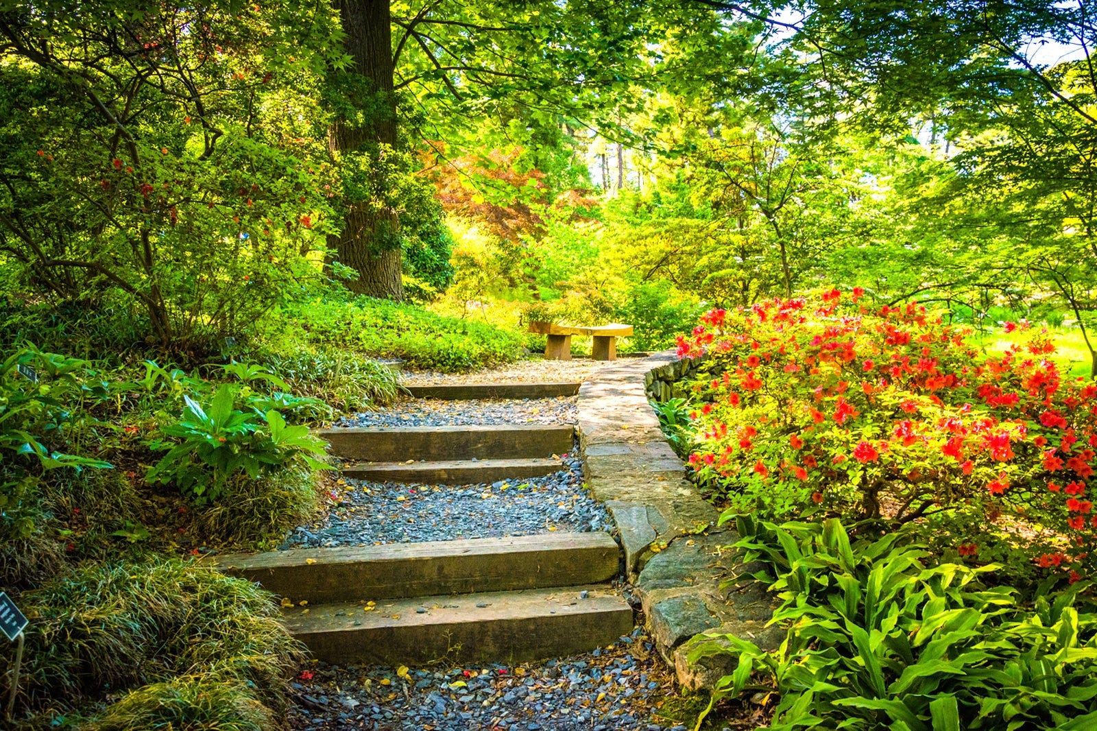 These flowers hint at the vast array of more elaborate floral displays throughout the Washington area. The U.S. National Arboretum spans 451 acres of rolling forested terrain. Its gardens include North American native plants, as well as collections from China, Japan, and Korea. Notable groupings include a bonsai museum, historic roses, and an herb garden. The National Grove of State Trees features trees representing all 50 states and the District of Columbia.