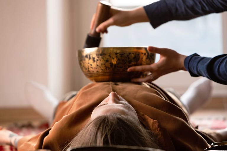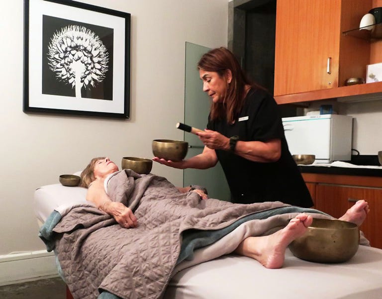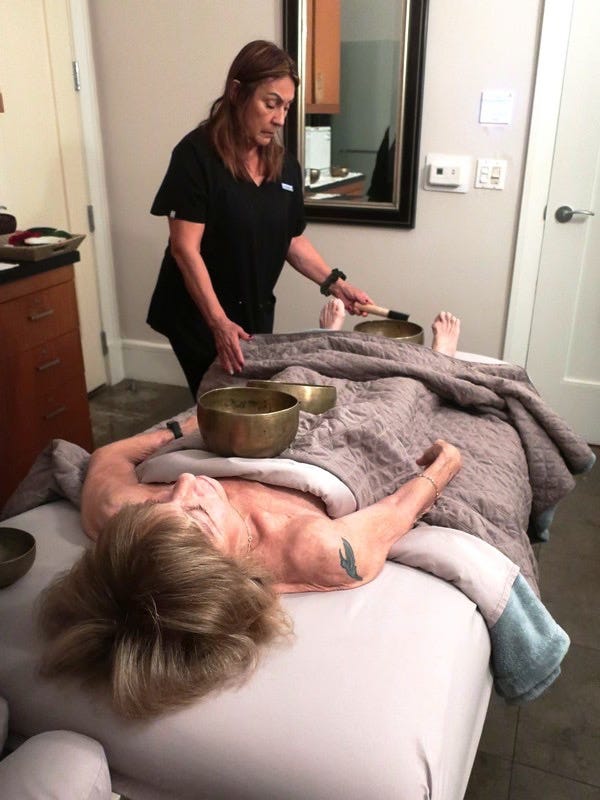Elsa, a Reiki-trained master (a step-above my chakra-addled brain), encouraged me -- in her soft voice in my dimly lit room -- to be calm and listen to the sounds of the bowls, to close my eyes, breathe in and out and connect with the bowls, to focus on their message. Meditation was key.