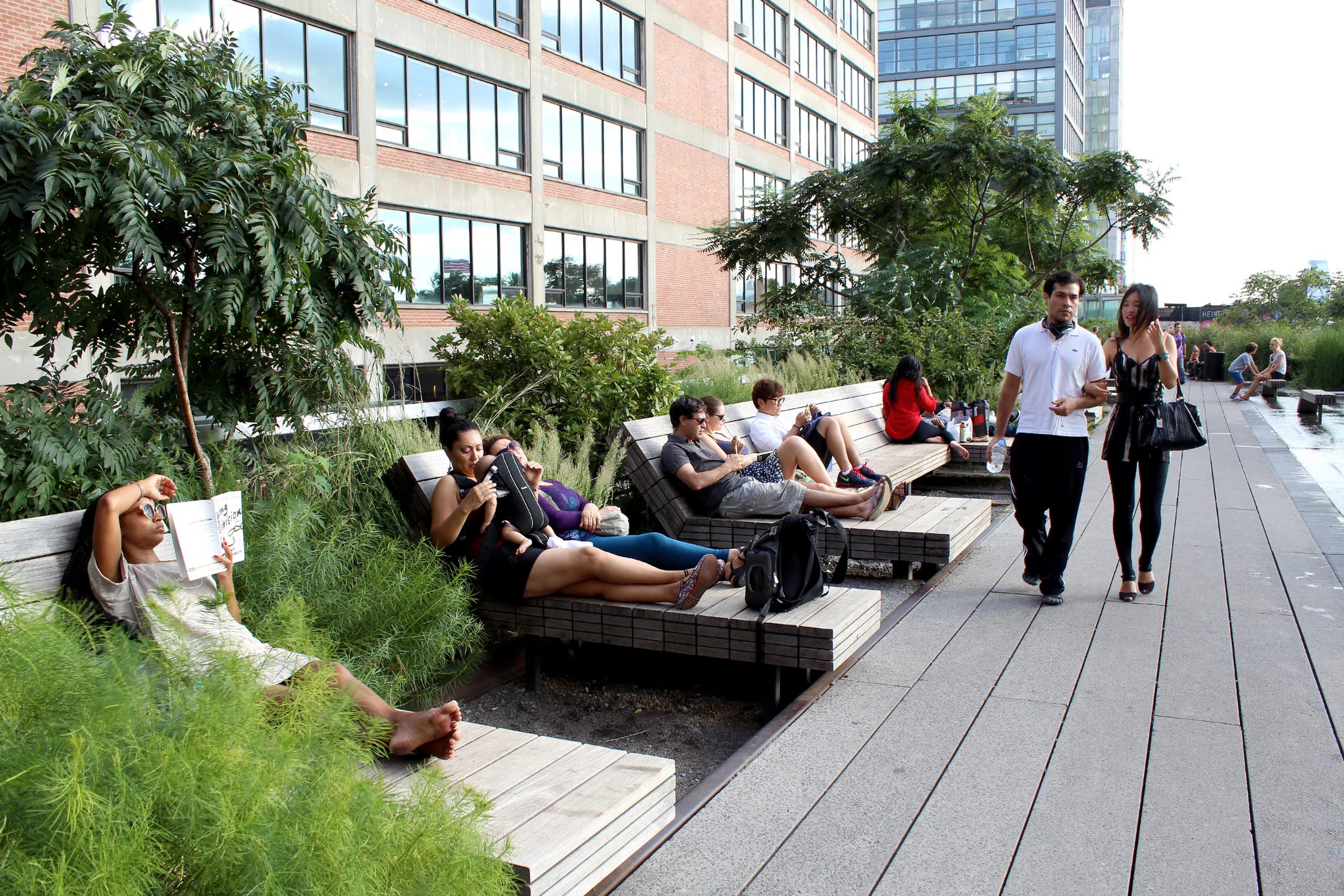 I was “Walking the High Line,” the elevated former railway which runs, 30 feet above street level, down the west side of Manhattan, New York. Along the way, it winds among a landscape of magnificent buildings that range from old to new, shabby to magnificent, uninspired to avant guard, and which serve industrial, commercial and residential purposes.